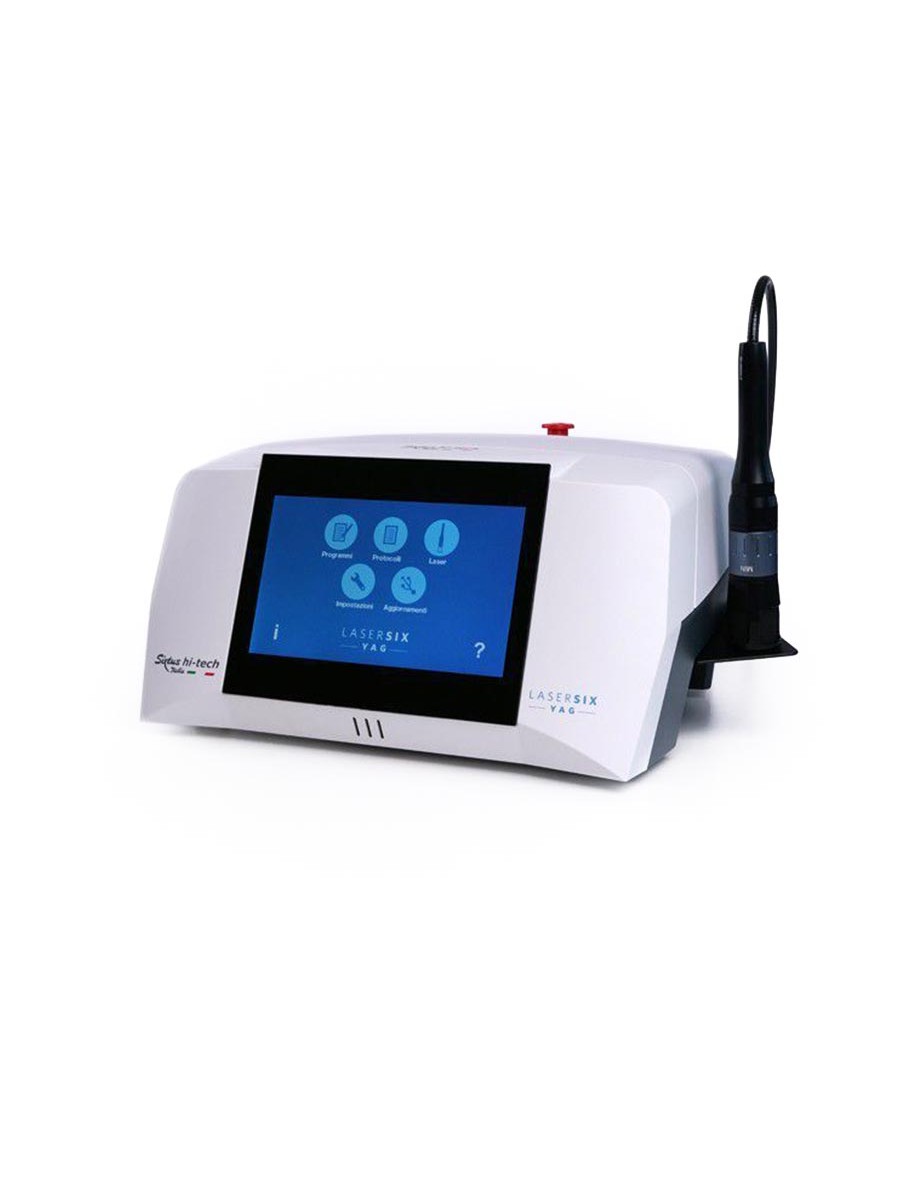 LaserSix Yag pozwala na pracę zarówno w trybie ciągłym, jak i pulsacyjnym. Długość fali 1064 nm i dostępna wysoka moc zapewniają skuteczne przekazywanie energii do tkanek, łącząc EFEKTY ANALGESYCZNE, PRZECIWZAPALNE I BIOSTYMULACYJNE oraz PRZECIWBÓLOWE.