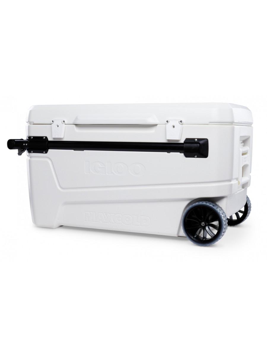 Lodówka wyposażona jest w wytrzymałe kółka i poziomy uchwyt teleskopowy Igloo Glide, który zmniejsza udźwig o połowę, znacznie ułatwiając transport. Odporna na uderzenia pokrywa zapewnia wysoką wytrzymałość.