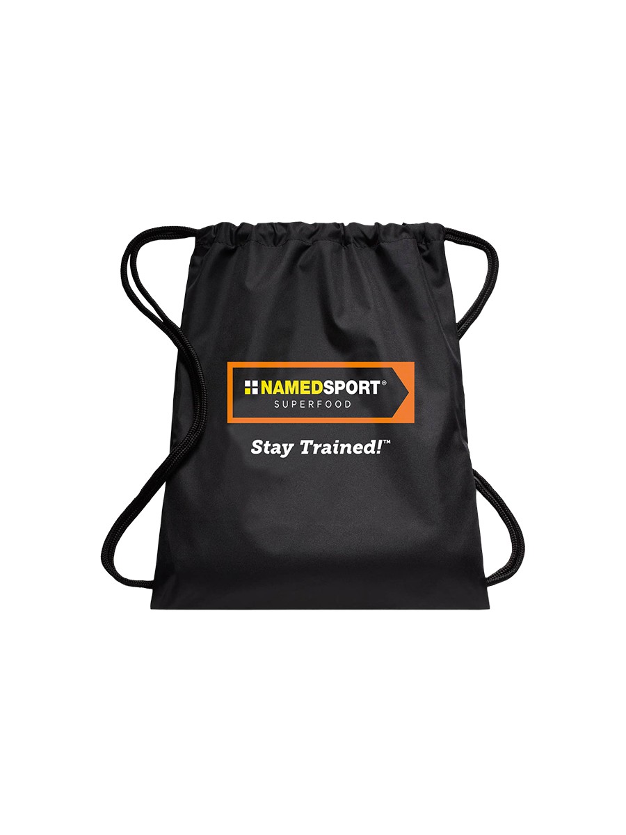 Czarna torba sportowa (worek) NAMEDSPORT> wytwarzana z materiału R-Pet pochodzącego z recyklingu.
