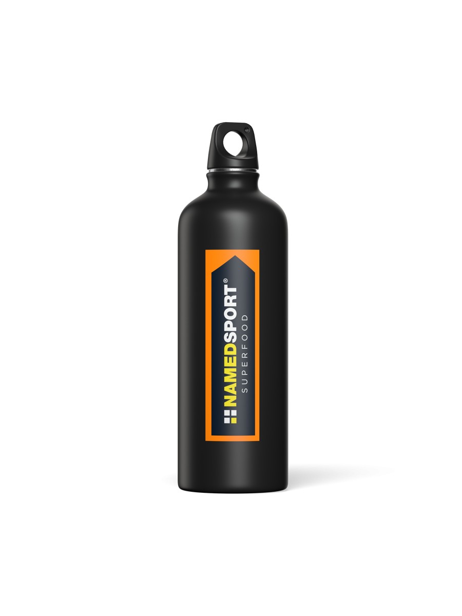 Idealna na trening oraz podróż, całkowicie czarna butelka z matowym wykończeniem z lekkiego aluminium z wąską szyjką. Wyposażona w zakrętkę zapewniającą praktyczne i bezpieczne zamknięcie. Hermetyczna, wielokrotnego użytku, nadająca się do codziennego użytku. Nie zatrzymuje, ani nie zmienia zapachów.