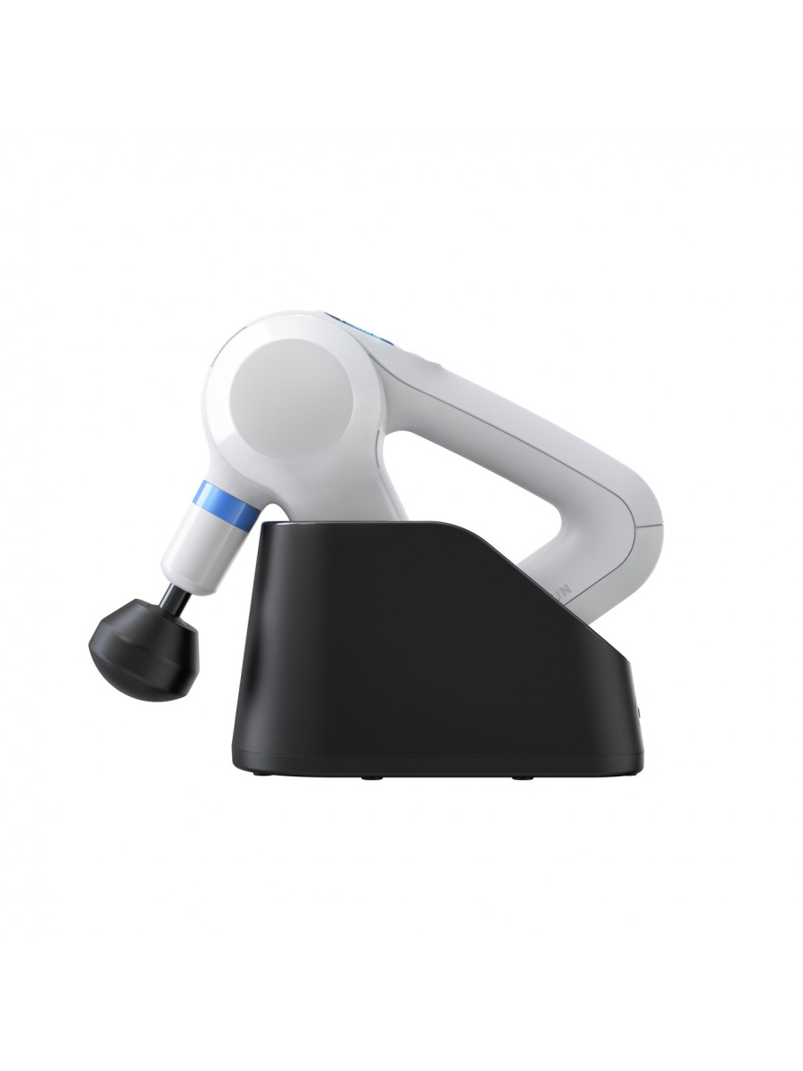 Urządzenie umożliwia szybkie ładowanie masażera Theragun Elite. Theragun może pozostać w podstawie nawet po całkowitym naładowaniu, co umożliwia szybki i łatwy dostęp do urządzenia.