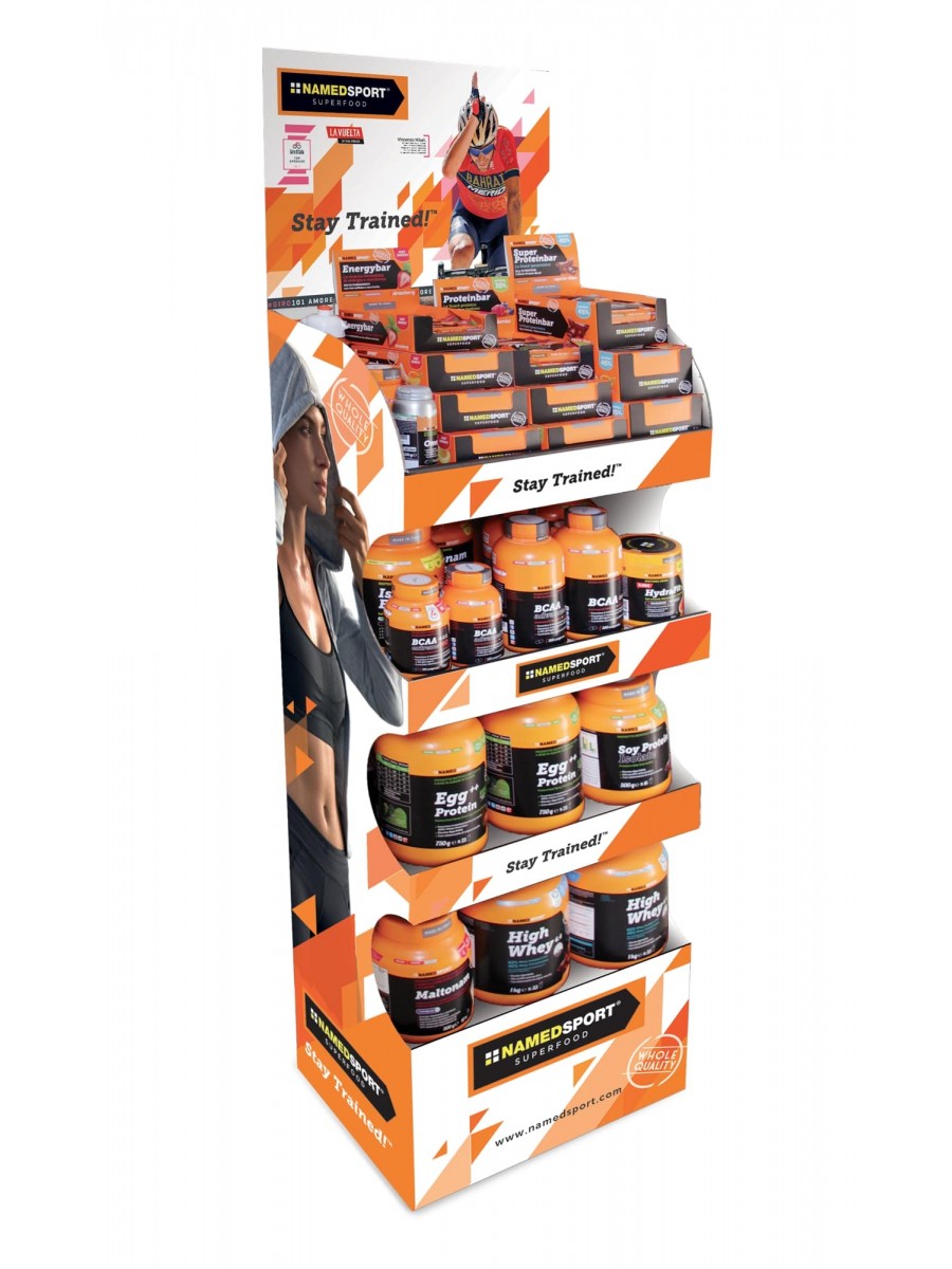 Duży ekspozytor przeznaczony na suplementy NAMEDSPORT>. Przeznaczony do sklepów rowerowych i sportowych, mających w ofercie suplementy marki NAMEDSPORT>.
