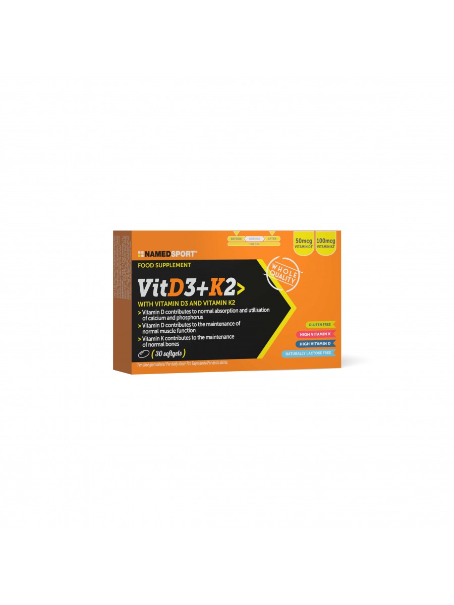 VitD3+K2 NAMEDSPORT to suplement diety klasy premium, stworzony z myślą o osobach aktywnych fizycznie i tych, którzy cenią sobie zdrowie i skuteczną profilaktykę. Połączenie witaminy D3 oraz witaminy K2 w formie miękkiej kapsułki z dodatkiem naturalnego oleju z wątroby dorsza stanowi kompleksowe wsparcie dla układu odpornościowego, kostnego i mięśniowego.