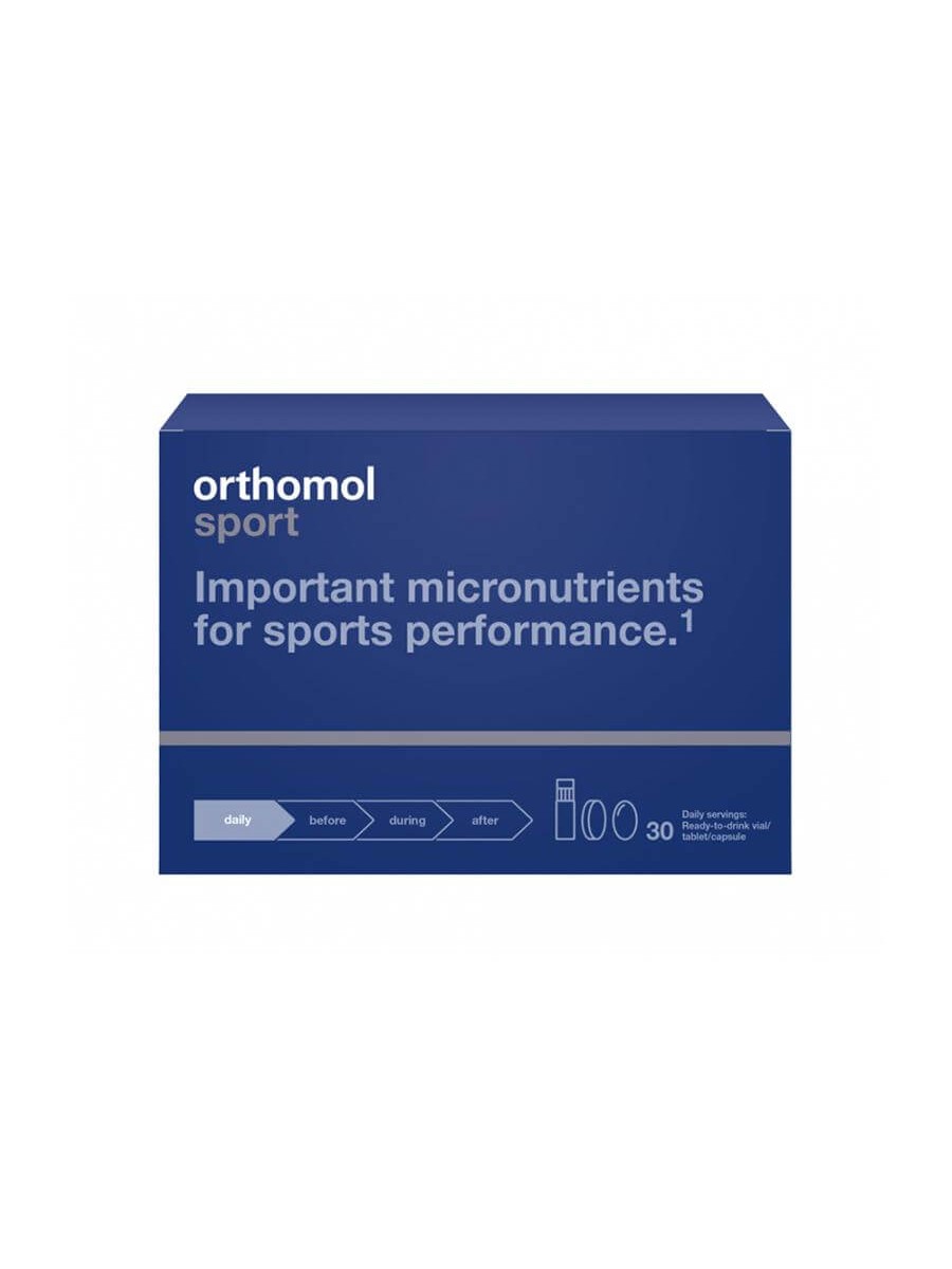 Orthomol Sport zawiera L-karnitynę i koenzym Q10, które biorą udział w metabolizmie energetycznym. Suplement zawiera również kwasy tłuszczowe omega-3, które w dużych ilościach występują w oleju rybim. Należą do nich przede wszystkim kwas dokozaheksaenowy (DHA) oraz kwas eikozapentaenowy (EPA).