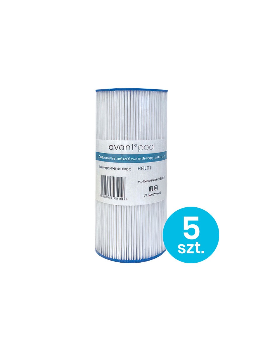 Zestaw pięciu wymiennych filtrów kartuszowych, kompatybilnych z zewnętrznym systemem filtracyjnym Avantopool Hanki. Filtrowanie odpowiada za zabezpieczenie jednostki chłodząco-grzewczej przed cząstkami brudu. Dzięki temu poprawia się czystość wody, wydłuża żywotność urządzenia oraz ogranicza konieczność jej wymiany.
