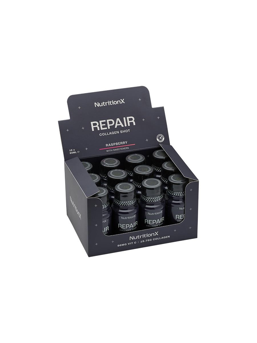 Repair Collagen Shot to innowacyjny suplement w formie płynnego koncentratu, bazujący na wysokiej dawce białka kolagenowego. Jedna porcja zawiera aż 20 000 mg (20 g) kolagenu oraz starannie dobraną mieszankę witamin i minerałów, które wspierają naturalne procesy produkcji kolagenu w organizmie. Produkt ten został stworzony, by wspomagać regenerację stawów po kontuzjach i przeciążeniach.