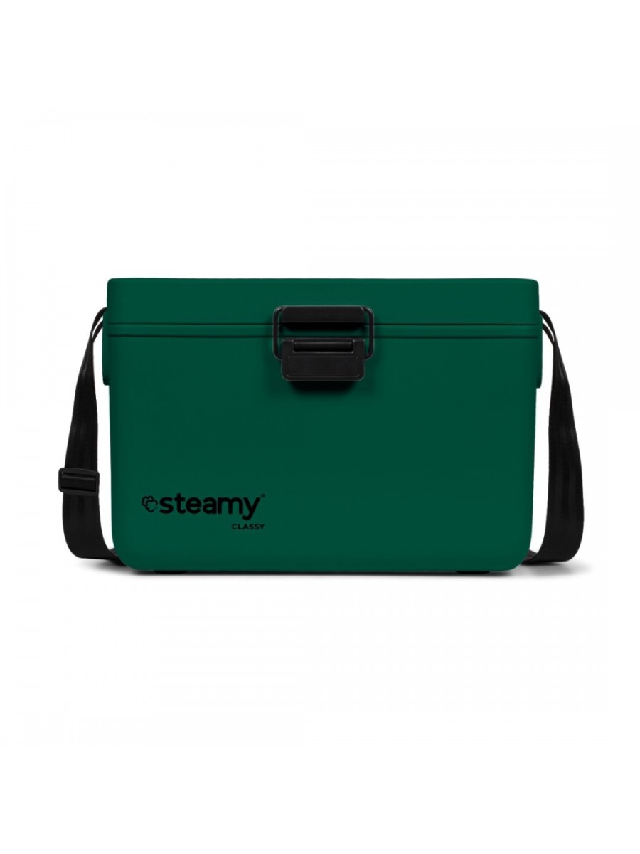 Steamy Classy ma pojemność 12 litrów, co zapewnia wystarczająco dużo miejsca, aby utrzymać w chłodzie ulubione przekąski, napoje i inne orzeźwiające produkty. Wbudowany pasek na ramię ułatwia przenoszenie i pozwala mieć wolne ręce do innych czynności. Solidne zapięcie sprawia, że lodówka jest łatwa do zamknięcia.