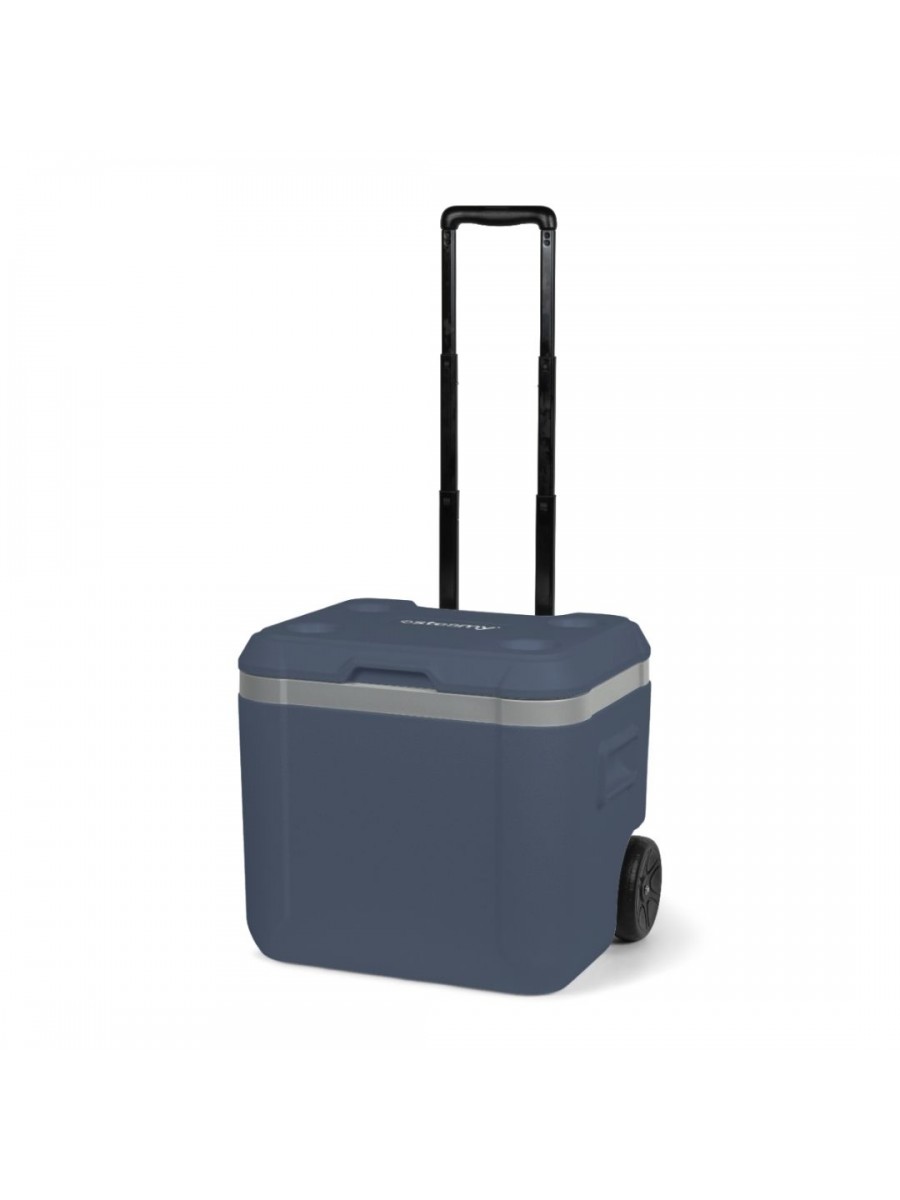 Praktyczna lodówka o pojemności 52 litrów, na kółkach, wyposażona w poręczną teleskopową rączkę.