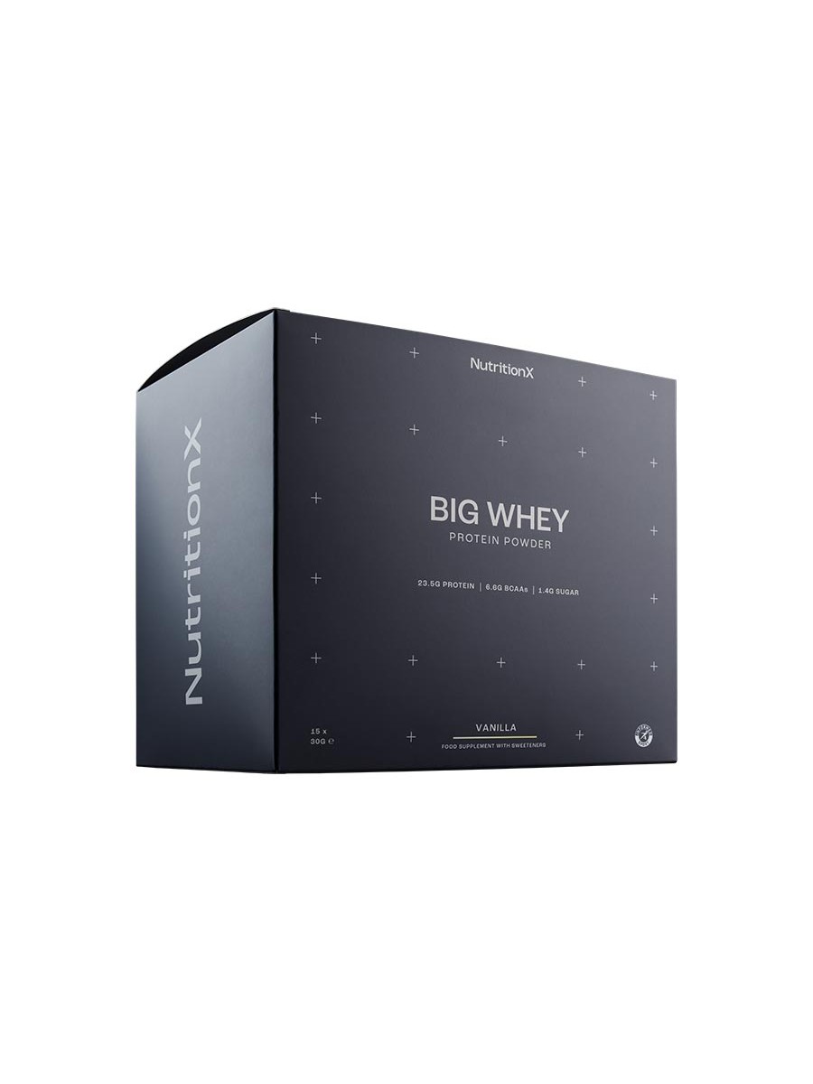 Big Whey od NutritionX w postaci wygodnych saszetek 30 g - idealnych do zabrania w podróż, zgrupowanie, czy trening. To doskonałe rozwiązanie dla osób aktywnych, które potrzebują szybkiego wsparcia w regeneracji mięśni po treningu.