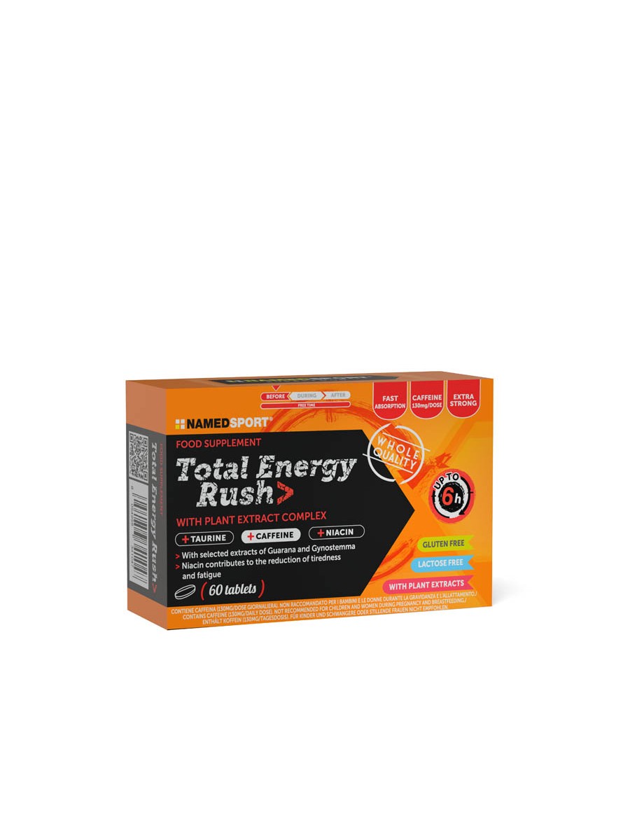 NAMEDSPORT Total Energy Rush to połączenie zaawansowanej technologii produkcji oraz rygorystycznych standardów jakości, z których słynie włoski producent. Wszystkie substancje aktywne wykorzystywane w formule są certyfikowane pod kątem czystości i skuteczności, a sam produkt jest wolny od glutenu, laktozy oraz składników odzwierzęcych, co czyni go odpowiednim także dla osób na dietach wegetariańskich i wegańskich.