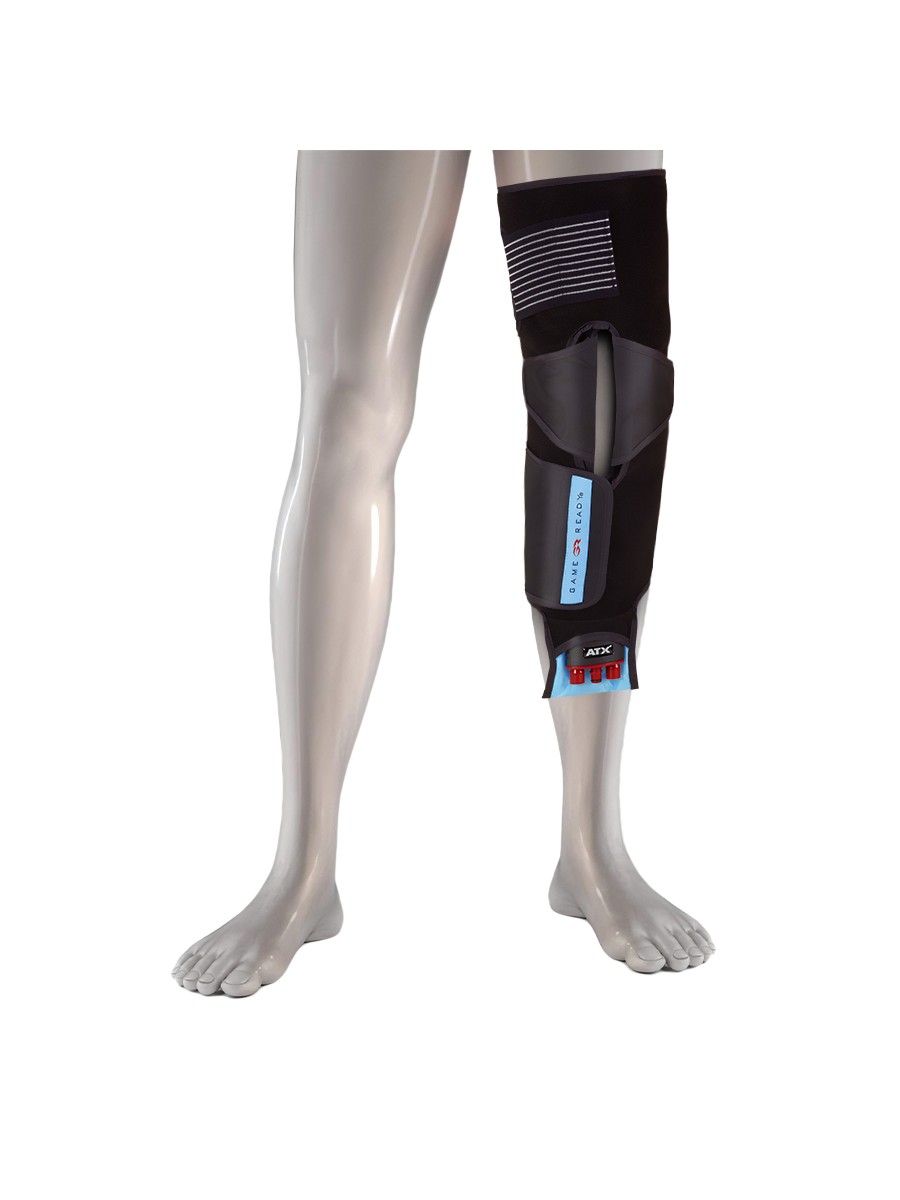 Ściągacz Game Ready® z podwójnym systemem działania na na kolano po artroskopii. Przylegający do ciała.