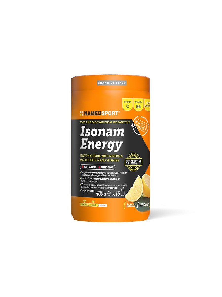 Izotonik w proszku do rozpuszczenia w wodzie o smaku cytryny. Doskonale nawadnia i dostarcza niezbędnych elektrolitów podczas wysiłku fizycznego. Isonam Energy to produkt dla osób profesjonalnie uprawiających sport oraz amatorów w dyscyplinach takich jak: bieganie, kolarstwo, czy sporty zespołowe. Formuła napoju wzbogacona została o składniki zwiększające wydolność oraz ekstrakt z żeń-szenia, który dodaje energii podczas treningu. Wyrazisty, kwaskowy smak cytryny dodatkowo orzeźwia i pobudza do działania podczas długich sesji treningowych. Jedno opakowanie produktu wystarcza na przygotowanie 16 porcji napoju.
