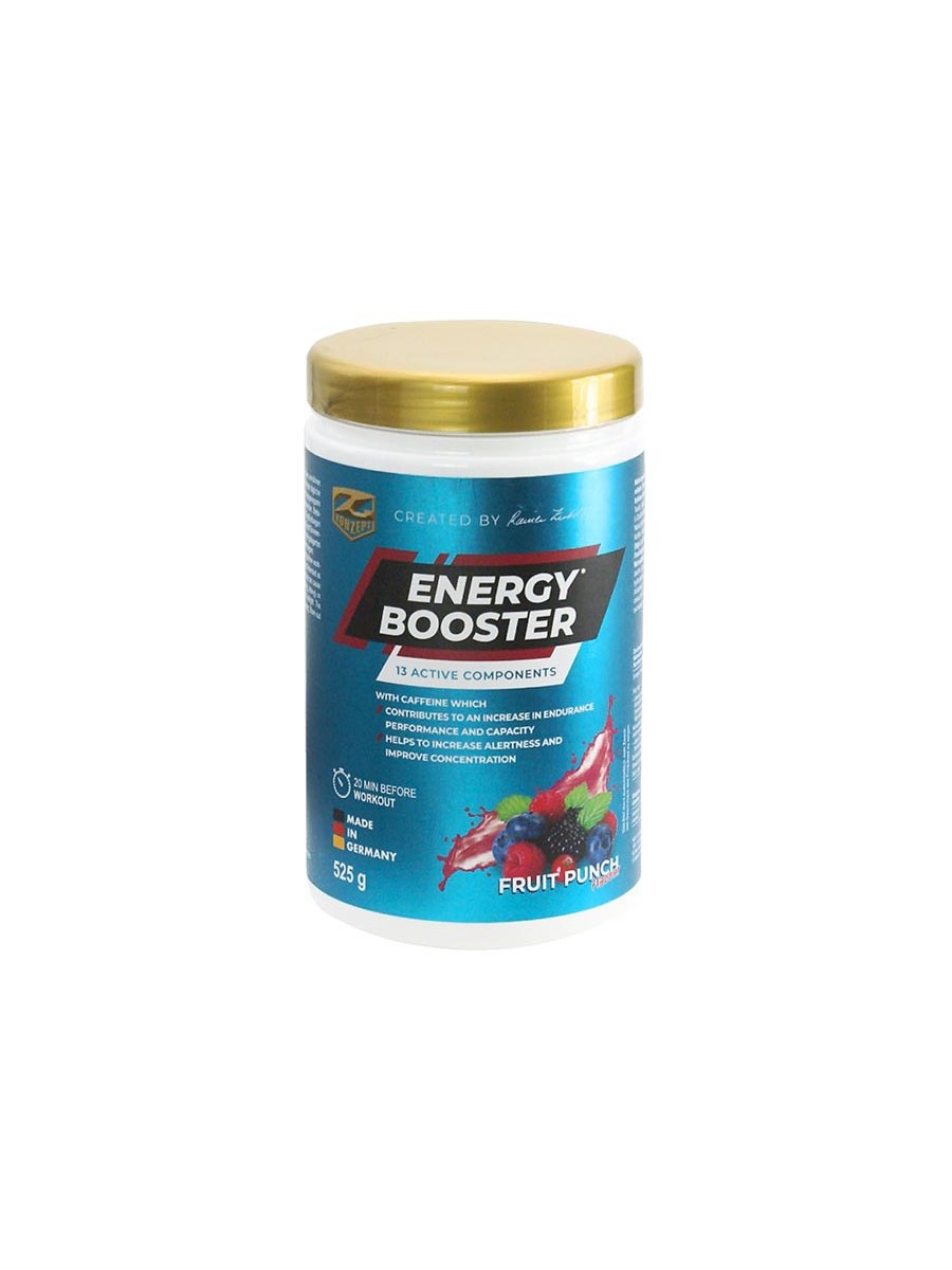 Mieszanka o różnej szybkości wchłaniania się węglowodanów z kofeiną stymuluje organizm i zapewnia energię podczas wysiłku (Doping Free). Ultimate Booster zawiera także beta-alaninę, która prowadzi do podwyższenia poziomu karnozyny w mięśniach, AKG oraz l-ornitynę, dostarczających tlenek azotu (NO), taurynę, BCAA, glutaminę, L-karnitynę i jabłczan cytruliny. Karnozyna buforuje kwas mlekowy, który jest główną barierą dla zachowania wysokiej intensywności wysiłku. L-karnityna transportuje kwasy tłuszczowe do komórki i mitochondriów. Tauryna może chronić tkankę przed stresem oksydacyjnym, występującym podczas podczas treningu.