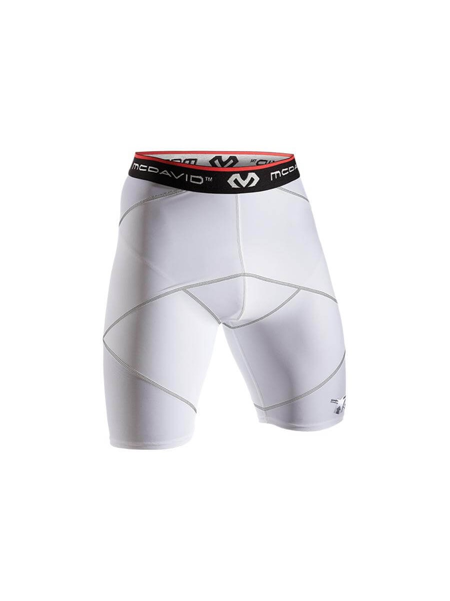 Spodenki kompresyjne z technologią Cross Compression zastosowaną dla wsparcia mięśni obręczy biodrowej.