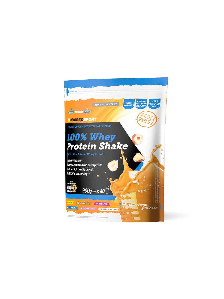 NAMEDSPORT 100% Whey Protein Shake / krem orzechowy to wysokiej klasy odżywka białkowa z czystym koncentratem białka serwatkowego, witaminami z grupy B i 5 g naturalnych BCAA w każdej porcji. Idealny shake proteinowy wspierający budowę masy mięśniowej, regenerację i metabolizm energetyczny - certyfikowany przez Informed Sport®.