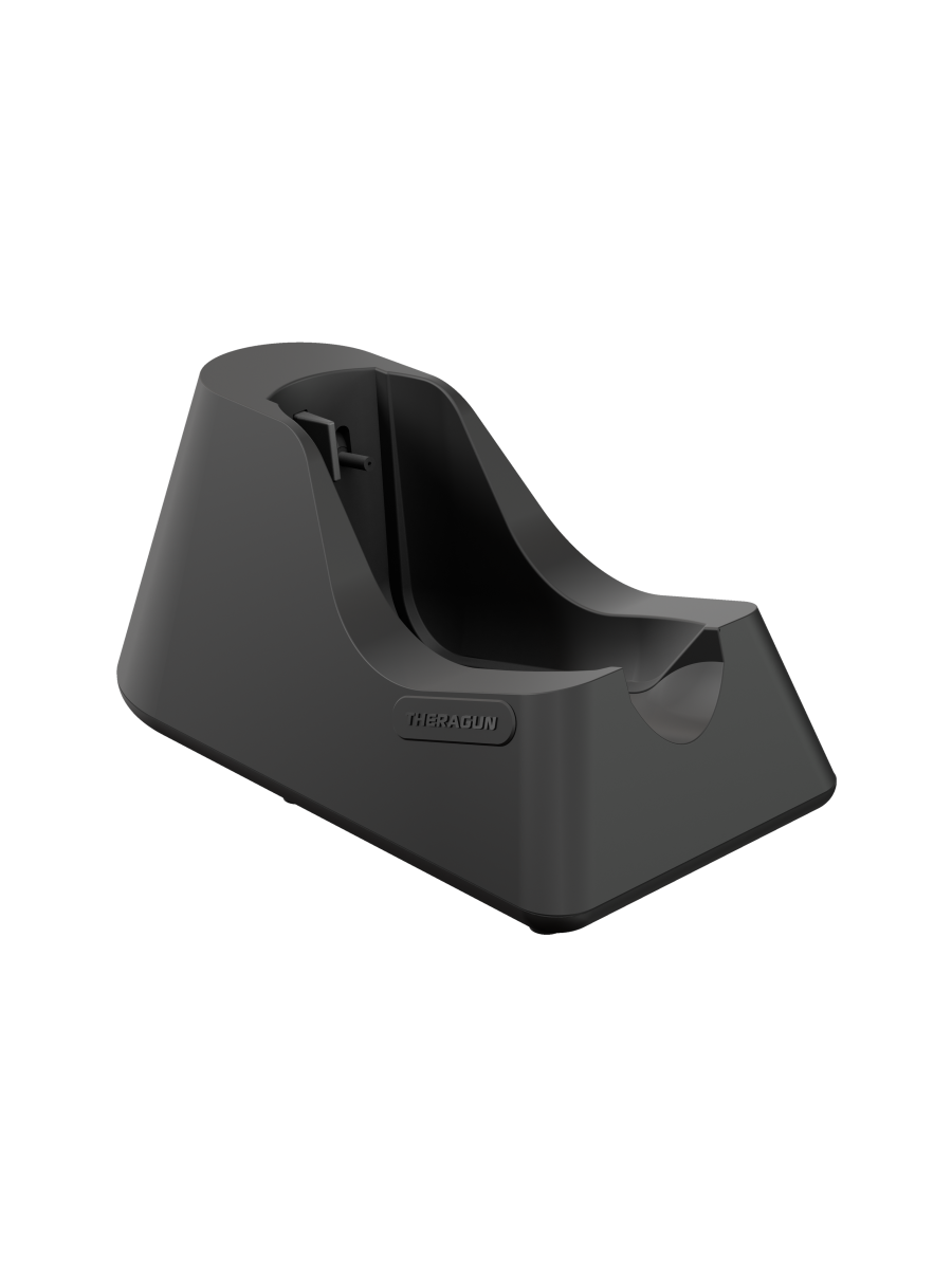 Podstawa ładująca, która zapewnia komfort użytkowania i ładowania Theragun G3PRO. Podczas ładowania, nie ma konieczności wyjęcia akumulatora, a urządzenie może pozostać w podstawce nawet po pełnym naładowaniu.